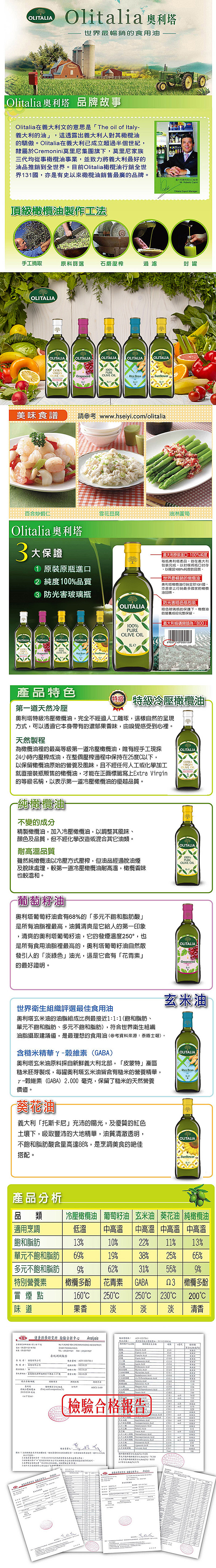 奧莉塔100%純橄欖油+葵花油1000ml各一瓶