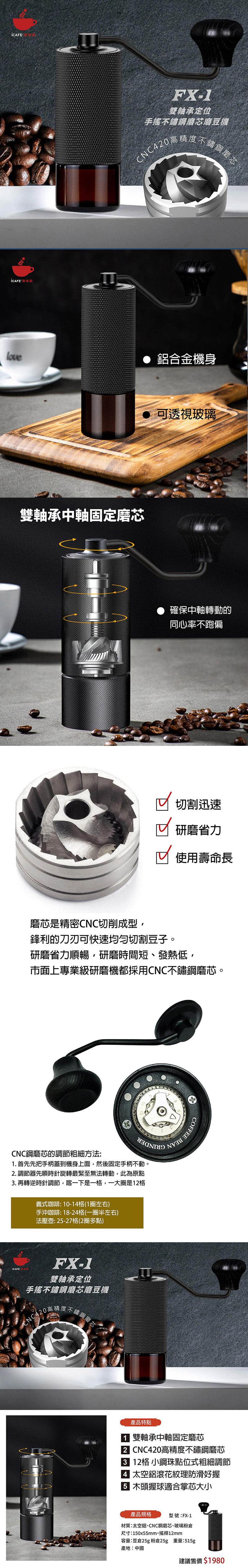 FX-1雙軸承定位手搖不鏽鋼磨芯磨豆機